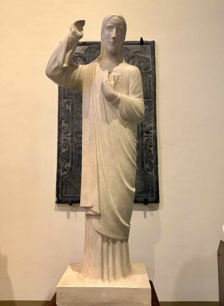 À l’intérieur de l’édifice, on s’arrêtera ainsi devant la statue du Christ bénissant, signée George Minne.