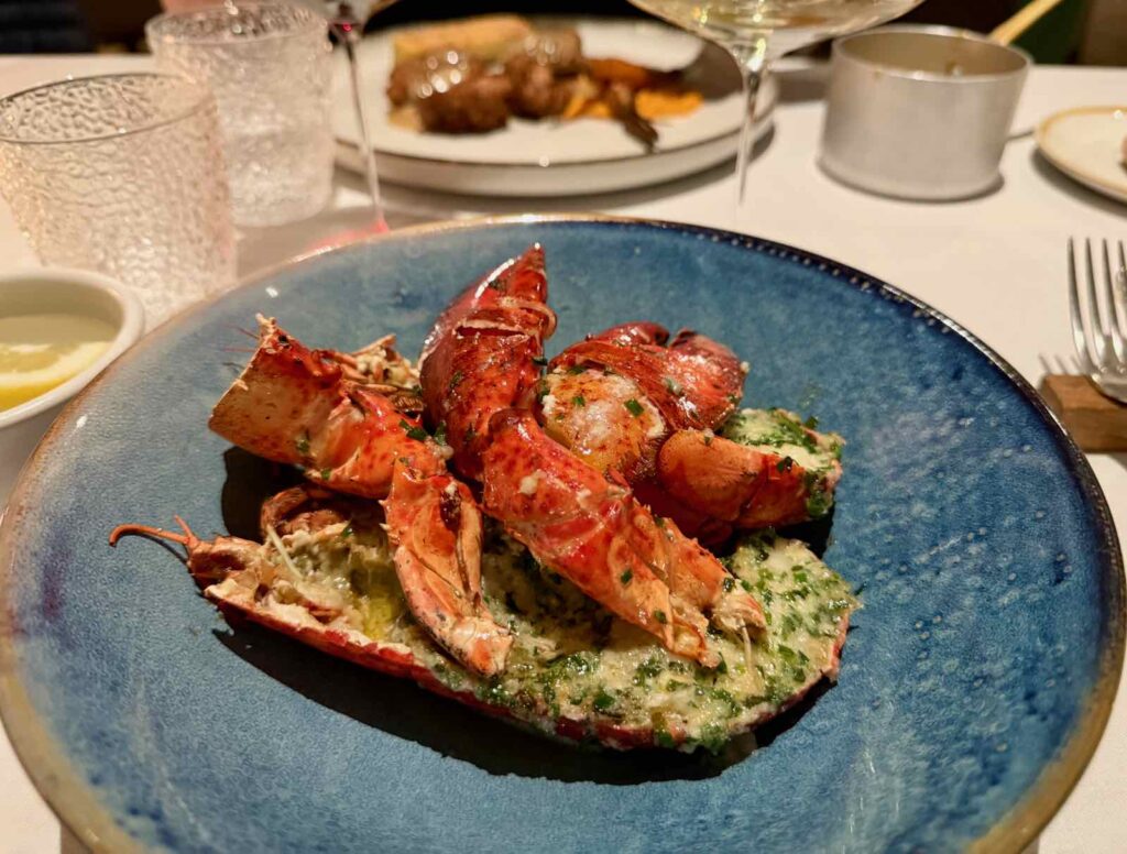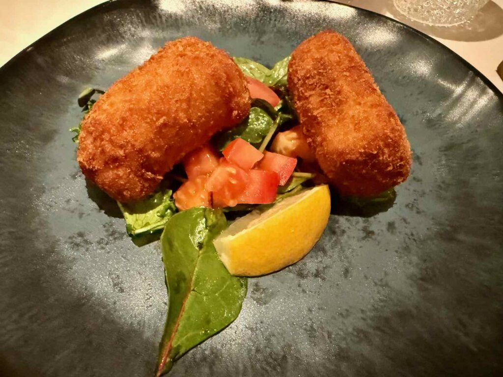 Même si les prix sont « flamands », c’est à dire plutôt élevés, nous y avons vraiment très bien déjeuné. Avec toast à l’anguille fumée, cocktail crabe et avocat et croquettes crevettes en entrée.