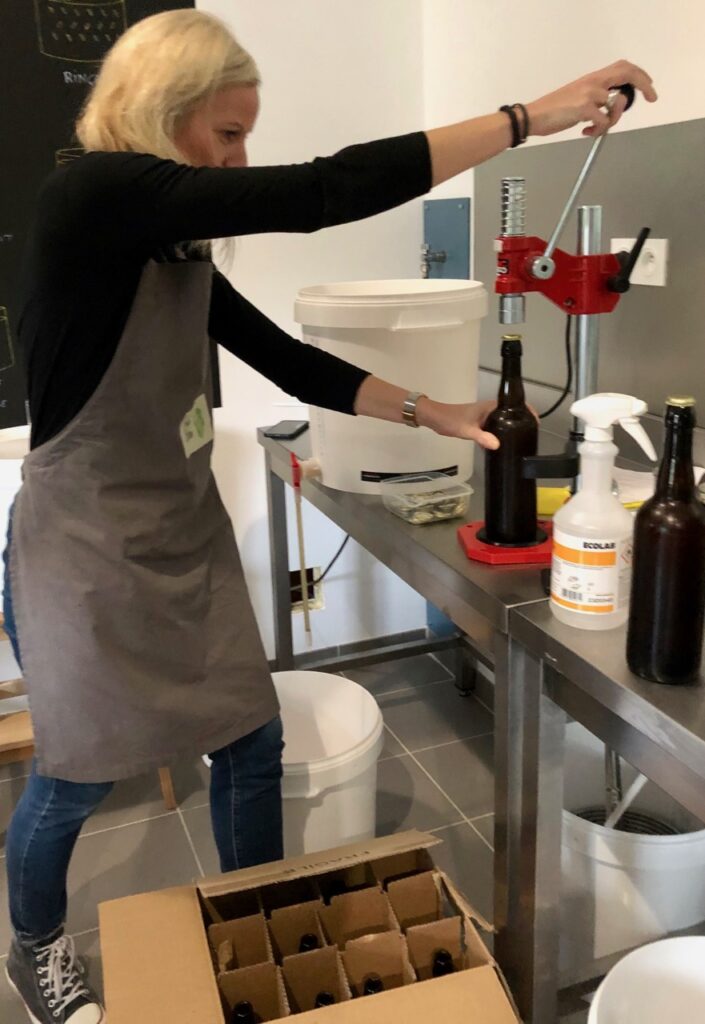 Ceci étant fait, restait le plus réjouissant : bien rincer la bouteille et embouteiller… Avant de fermer la bouteille en mettant une capsule, grâce à une sympathique machine qui ressemble un peu à un presse-agrumes.