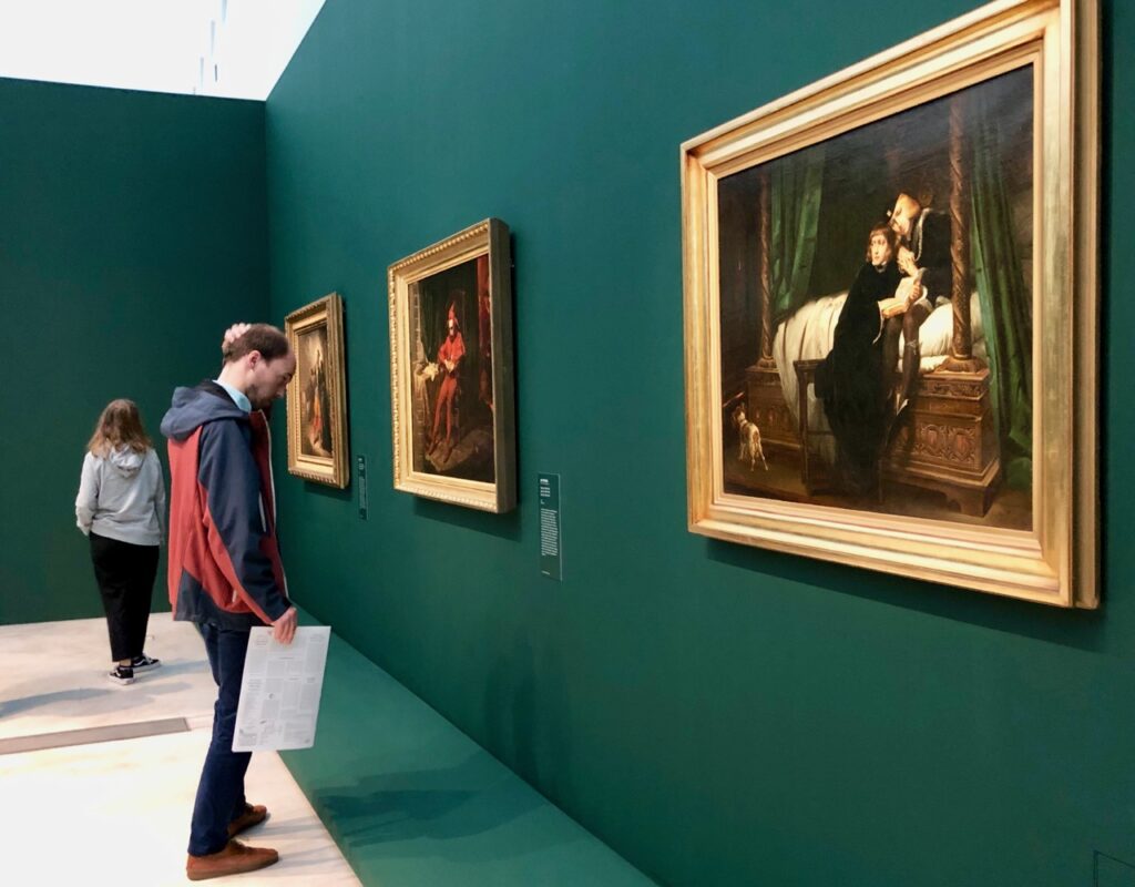 C’est précisément l’un de ces partages, celui de 1773, que met en scène l’immense tableau de Jan Matejko, Rejtan ou le déclin de la Pologne, qui ouvre l’exposition. Au château royal de Varsovie, un noble, Tadeusz Rejtan (tout à droite), tente désespérément de s’opposer à cette partition…