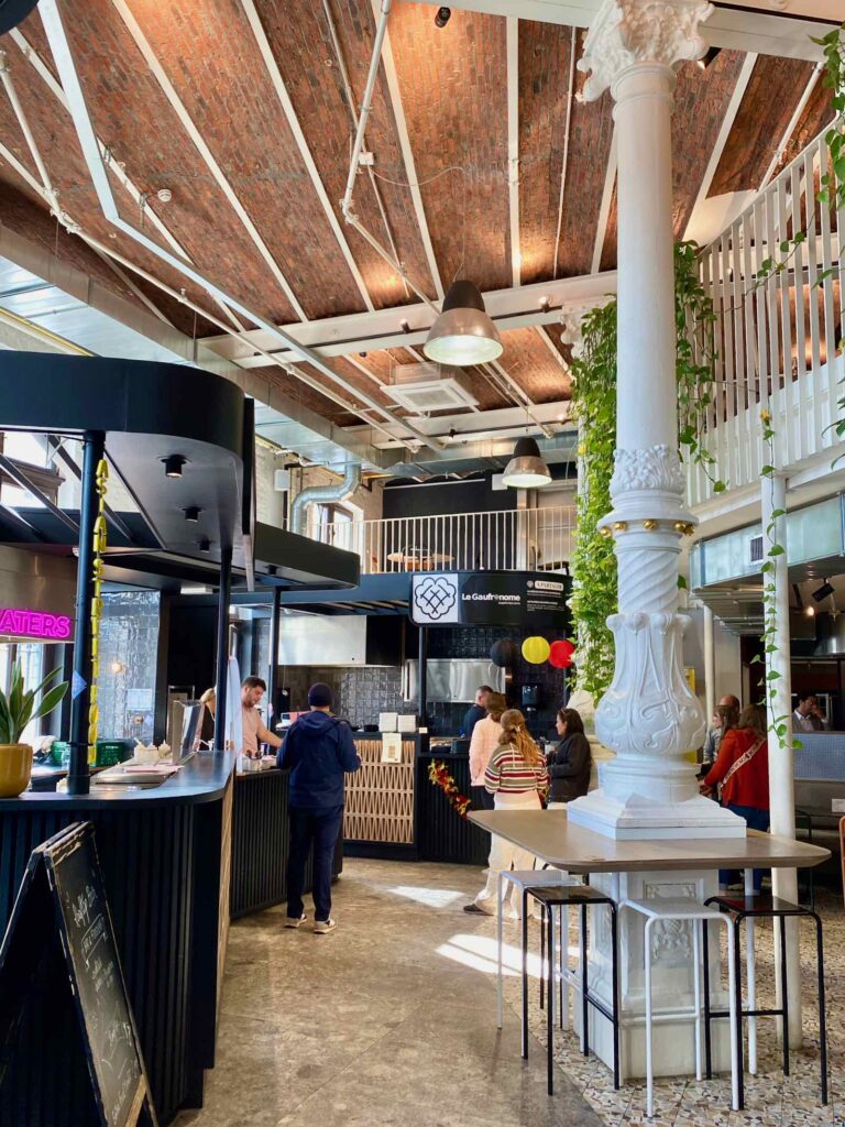 À côté, dans une salle pleine de charme, six comptoirs proposent street food asiatique, cuisine africaine, plats indiens, street food sud-américaine et gaufres de Liège revisitées en différentes versions salées. Une proposition locale et originale, même si, côté finesse, on fait franchement mieux…