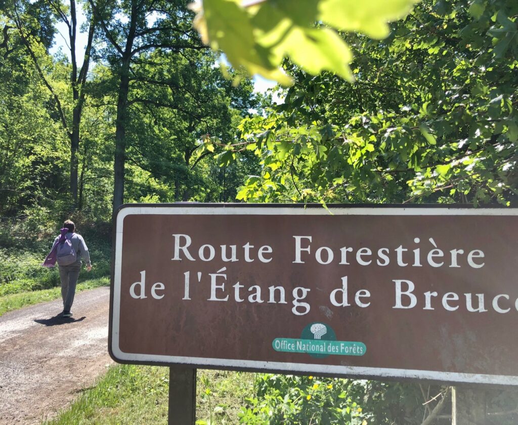 Vous voyez la forêt, juste derrière l’étang ? Eh bien c’est là que se poursuit la balade, juste après un virage à droite. Empruntez la route forestière de l’étang de Breucq et préparez vous à arpenter un bon moment la forêt.