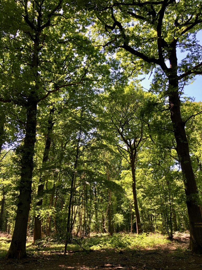 Virage à gauche et vous voici dans la forêt domaniale de L’Abbé-Val-Joly, un magnifique poumon vert, qui fait du bien au corps comme à l’âme. Ça monte un peu et je commence à peiner…Mais heureusement la contemplation des grands arbres, qui laissent à peine filtrer le soleil, m’empêche de (trop) penser.