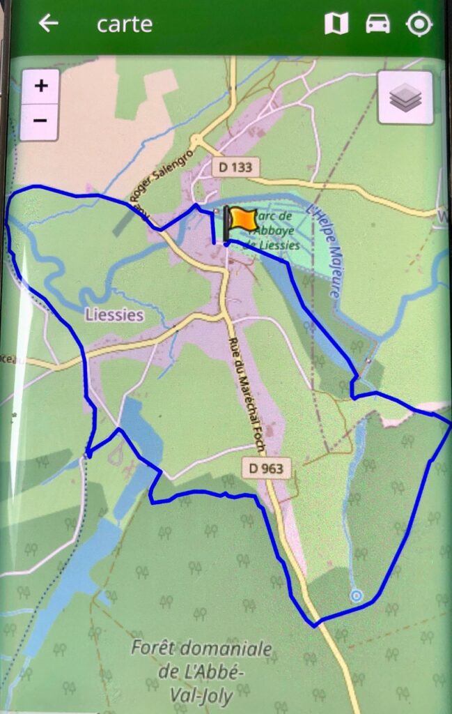 Voilà, c’est fait ? Alors retournez sur la page d’accueil de l’appli et allez cette fois dans la rubrique « Circuits disponibles ». Et là, miracle, vous trouverez votre circuit Autour de Liessies. Évidemment, il vous faudra être sur place pour être géolocalisé et voir votre avancée le long du parcours. Ce qui ne vous empêche pas de bien étudier le tracé avant de partir…