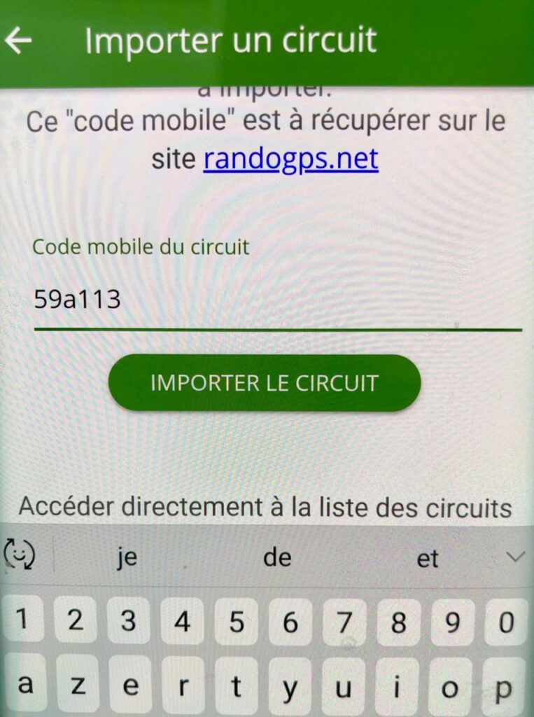 Dans la zone « Code mobile du circuit », il vous suffira de taper le code 59a113. Puis de cliquer sur « Importer le circuit » et d’attendre quelques secondes, le temps de charger la balade.