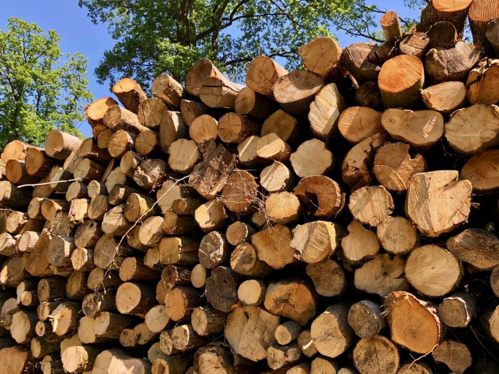 De jolis tas de bois, parfaitement rangés, prouvent que la forêt est bien gérée… On croise le (très moche) pavillon de chasse des Aisements et on continue jusqu’à ce que le chemin coupe la D 963.