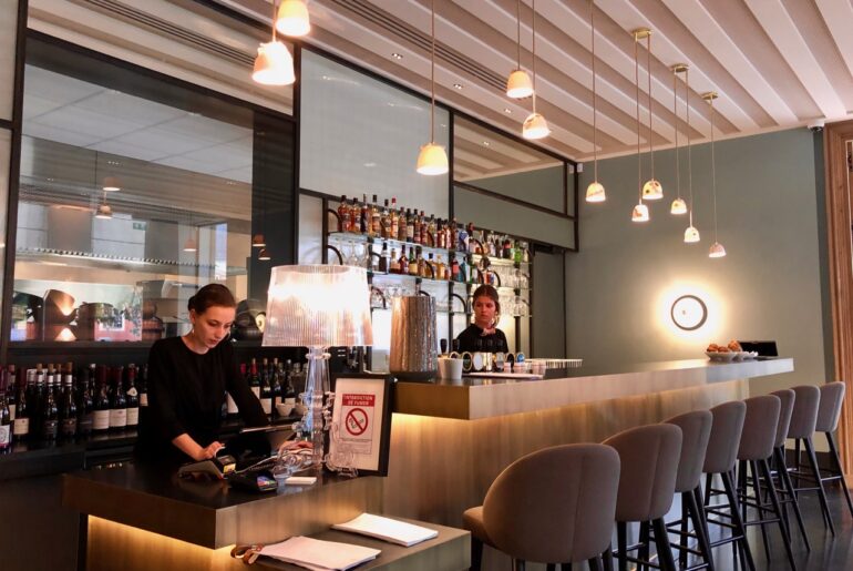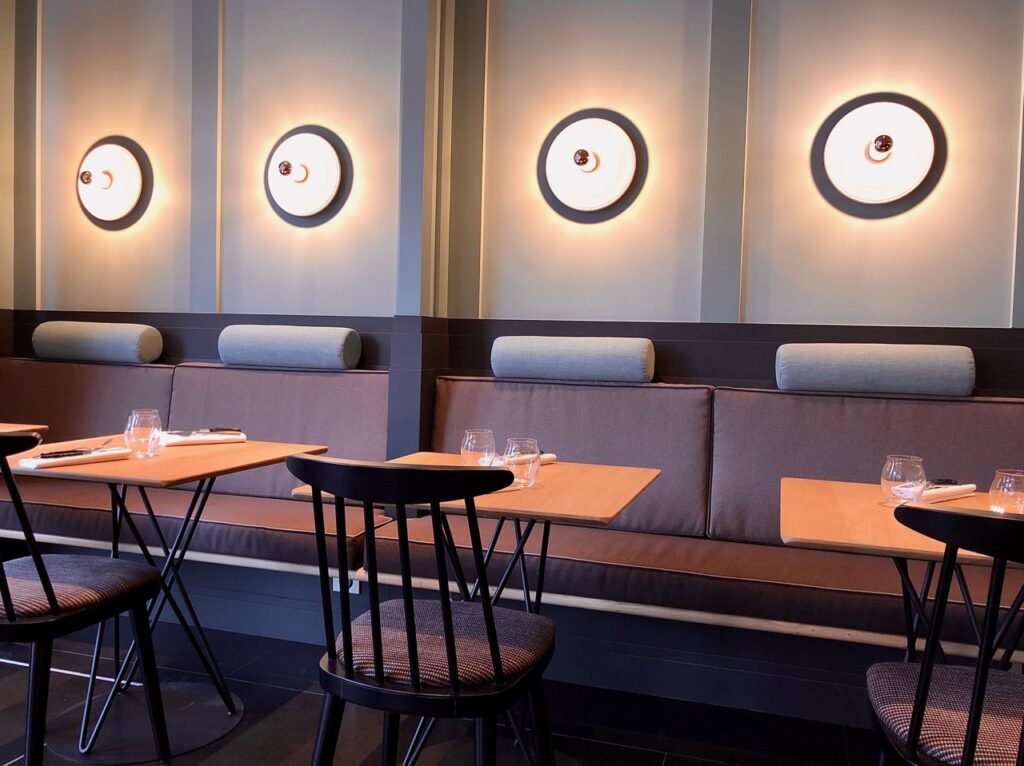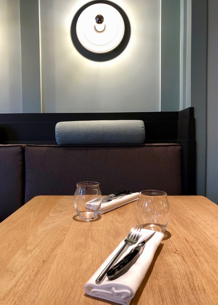 J’étais donc curieuse, l’autre soir, de voir la salle de La Griotte terminée, une fois la massive mais très élégante porte en chêne de la brasserie franchie.