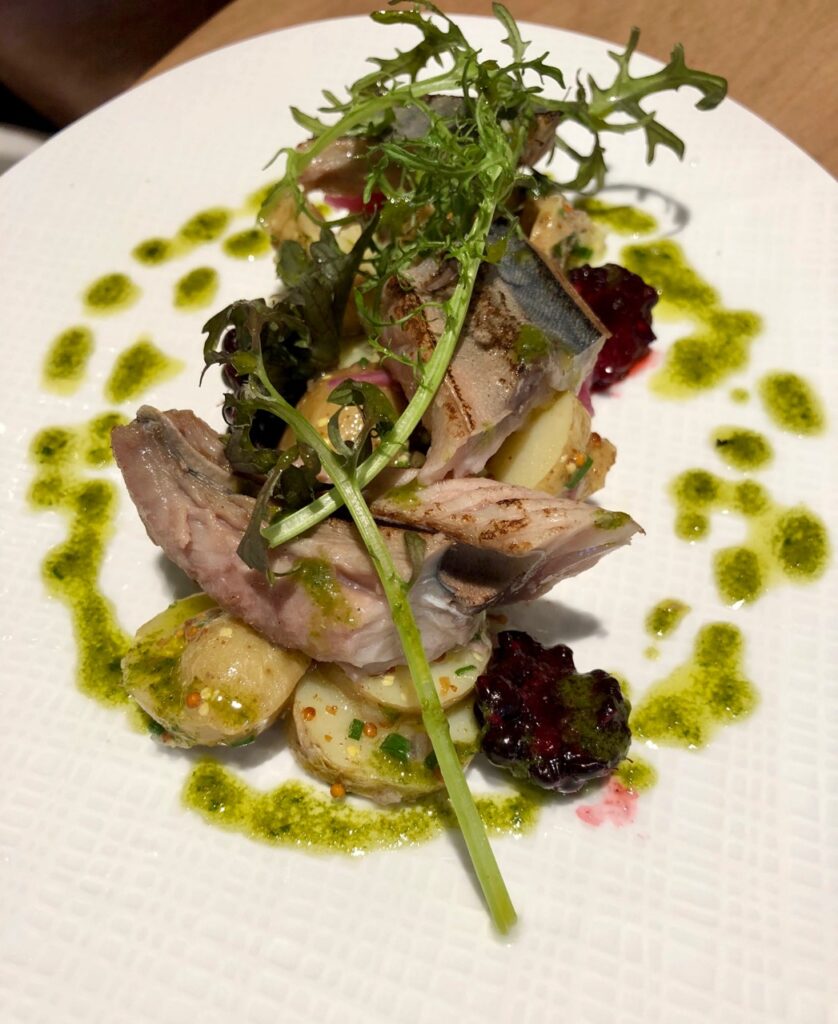 En entrée, mon ami Marc a choisi les « maquereaux, pommes à l’huile », un bon vieux classique, bien représentatif de cette cuisine de quartier, simple et bonne, qu’Éric Delerue souhaite proposer à La Griotte. L’assiette avait belle mine et le goûteur a apprécié.