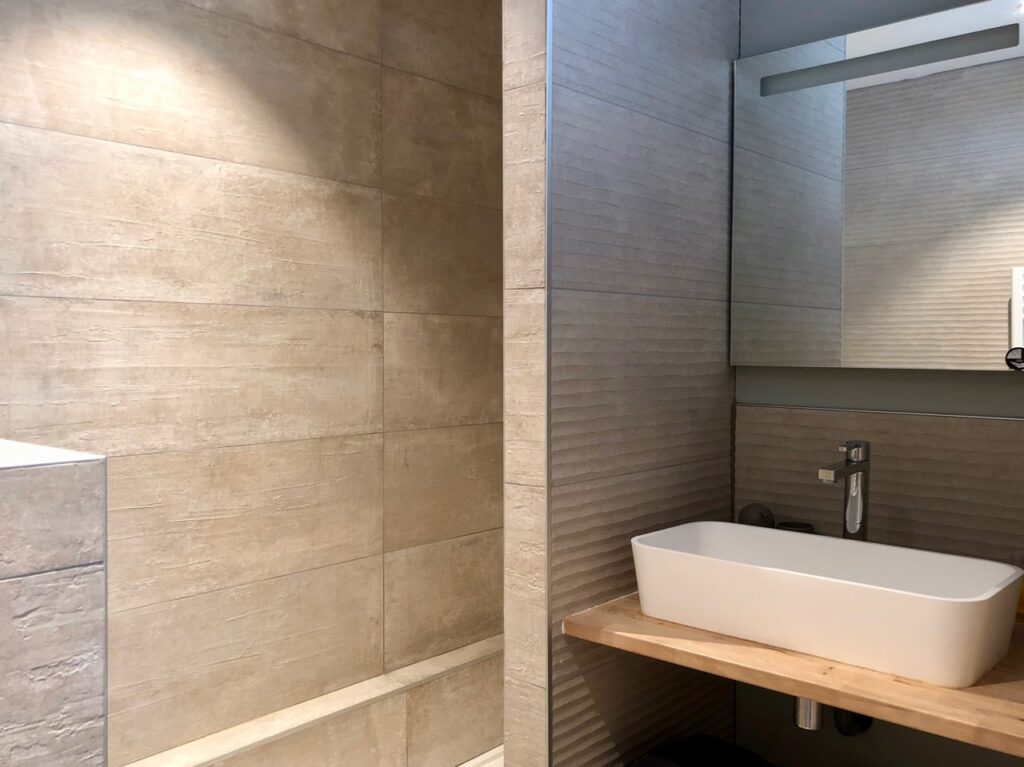 Je ne sais plus trop à quel appartement appartient cette salle de bains. Mais je sais qu’elles sont toutes ultra contemporaines et bien conçues, même si elles ne sont pas immenses. De quoi faire plus qu’une simplet toilette de chat…