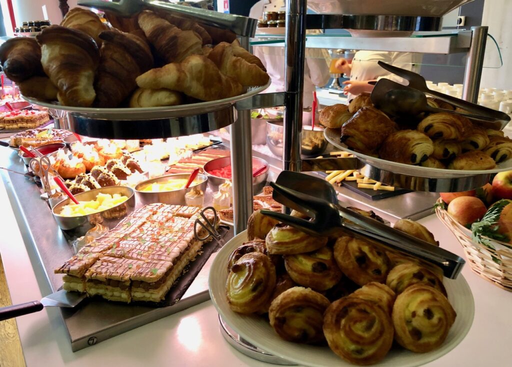 Car oui, au Casino Barrière, le brunch n’est pas qu’un simple petit déjeuner amélioré. C’est un vrai repas, avec beaucoup de salé et même des plats chauds. On y trouve les traditionnels œufs brouillés, saucisses de veau et poitrine de porc grillée d’un breakfast anglais. Mais aussi des tomates provençales, des haricots verts, des pommes de terre persillées et du rôti de veau. En tout cas, le dimanche où nous avons testé. Peut-être qu’il y a autre chose d’autres dimanches…