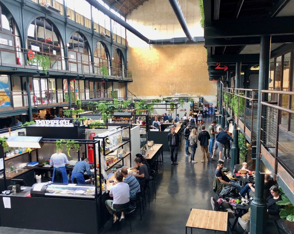 On achète pour emporter chez soi ou dans son appart airb&b. Ou on s’installe pour manger sur place. Et rien n’empêche de composer son repas au fil des stands.