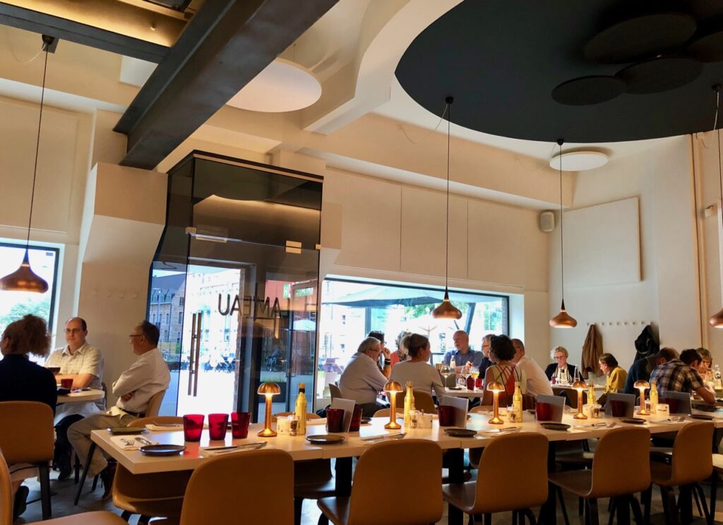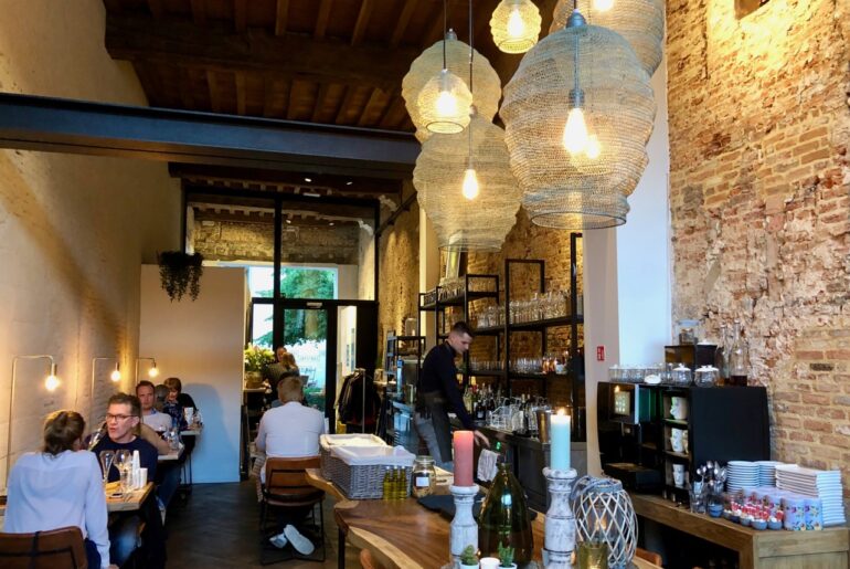 Puis on réalise qu’à l’arrière se trouve une salle de resto, claire et contemporaine. Chez Stassart11, on sert un lunch à partager, nouvelle mode à Malines j’ai bien l’impression.