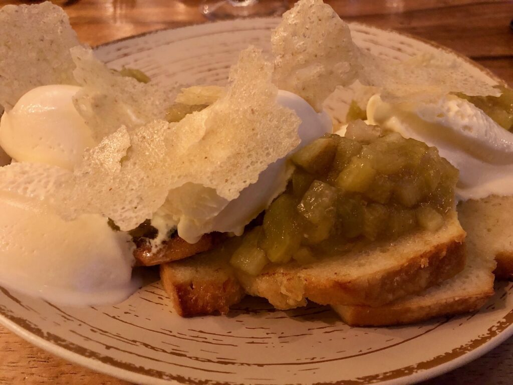 En dessert, le pain perdu à la bourgeoise était marié à la rhubarbe et au lait battu.