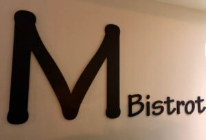 Ah au fait, j’allais oublier les mignardises, autre signe du côté bistronomique du M Bistrot. Une virgule chocolatée posée sur une crème aux épices. Mexicaines, a dit la dame. Autour de la table, on a tous pensé que cela avait plus un parfum d’Orient. Comme un petit goût de voyage du côté du Grand Bazar d’Istanbul ou de Mascate…