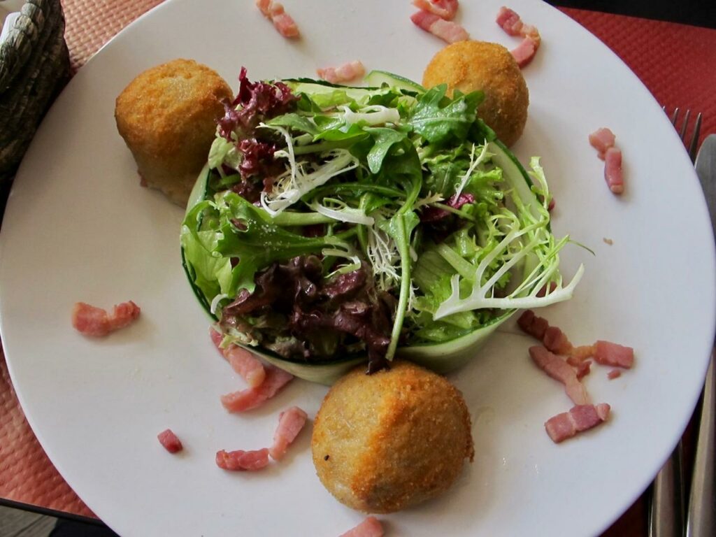 Des croquettes de crevettes grises, de fromage local ou des croquettes Ardennaises en entrée. Un escavèche de Chimay, un boulet de Liège, un vol-au-vent à la Montoise, un chicon au gratin ou un burger Mac Belge en plat. Avec des frites servies dans un sachet en papier. Rien que du diététique, je vous dis ! Bon, il y a quand même quelques salades, je suis mauvaise langue.