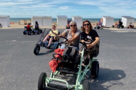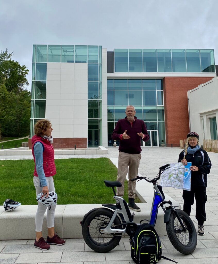 Tout a commencé devant le Palais des Congrès du Touquet. Tim, Fabienne et Anita du Club Énergie Vélo y attendaient les participants à cette sortie inaugurale. Petit mot de bienvenue aux « cobayes » de l’expérience et chacun choisit son vélo électrique et son casque.