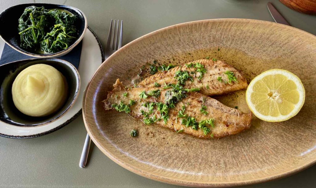 Monde et Belgique, c’est exactement ce que j’ai choisi en optant pour les délicieusement parfumées ravioles Wonton de crevettes, bouillon saké, soja, yuzu, ail frit, chou pakchoï, cébette (19 €), puis pour le duo de solettes meunières, épinards et purée au beurre (34 €). Le tout, carrément délicieux.