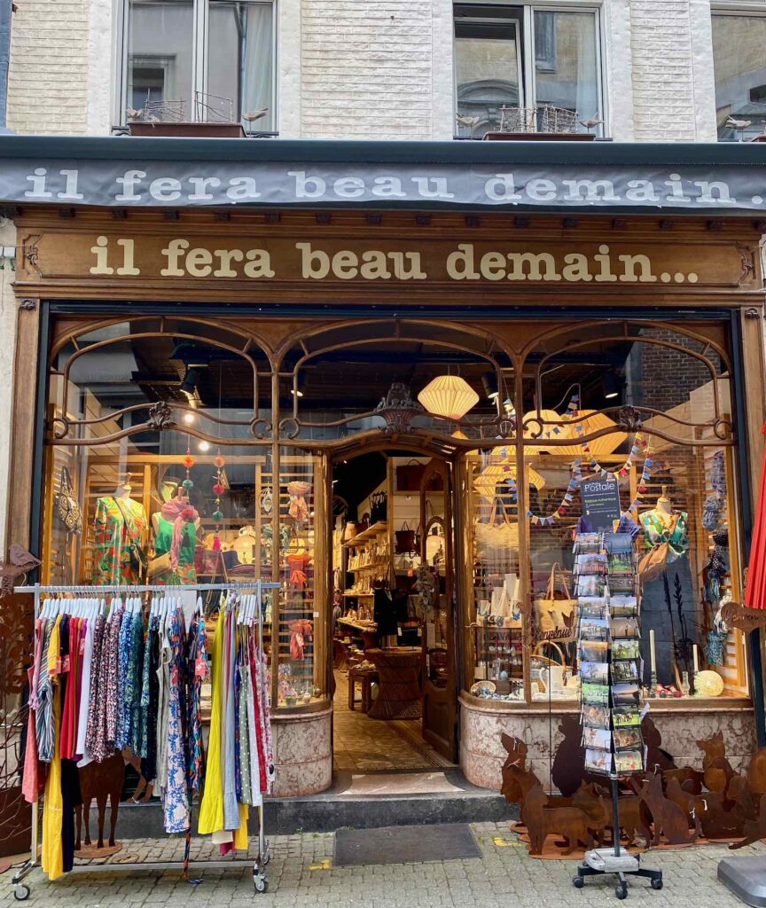 J’ai aussi repéré pour vous L’Empreinte belge, située 69 rue des Carmes, une enseigne qui veut promouvoir le savoir-faire belge à Namur (et Dinant). Elle propose bijoux, vêtements, meubles, créations et bières (notamment) toujours fabriqués localement.(https://lempreintebelge.wixsite.com/lempreintebelge).
