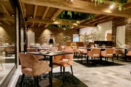 Au restaurant, entrées 18/24 €, salades 19,50/ 27 €, plats 26/58 €