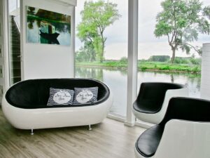 Belgique Nieuport Homeboat espace détente très lumineux avec vue sur canal