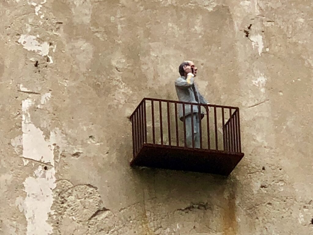 J’avais déjà bien aimé ses petites silhouettes humaines lors d’une précédente édition de Beaufort. L’Espagnol Isaac Cordal revient à Ostende, avec ses mini sculptures, souvent perchées sur un balcon. Des hommes d’affaires en costume qui téléphonent, marchent ou (vous) observent.