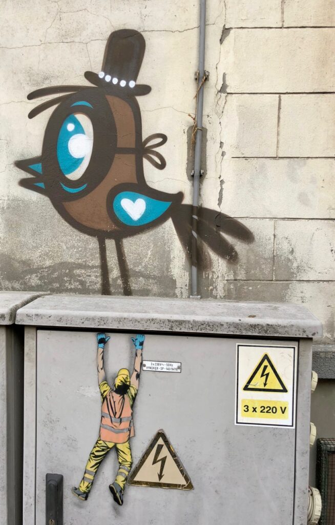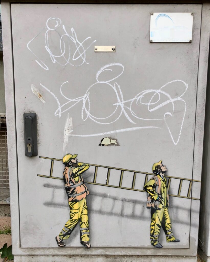 Ce Bruxellois réalise de petits bonhommes au pochoir, de petits éboueurs fluorescents qui se baladent ça et là, notamment sur des boîtes électriques. Jaune a participé aux trois éditions de The Crystal Ship, autant dire que les organisateurs en sont fans. Moi aussi d’ailleurs !
