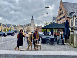 Belgique-Poperinge-Grote-Markt-statue-devant-cafe-La-Poupee