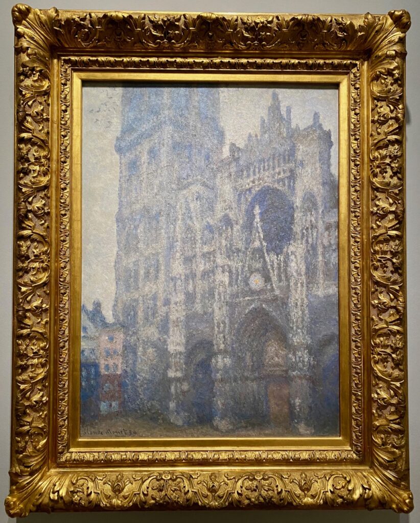 Mais l’œuvre emblématique de Monet reste ce Portail de la cathédrale de Rouen, temps gris, subtil camaïeu de bleu et de gris.