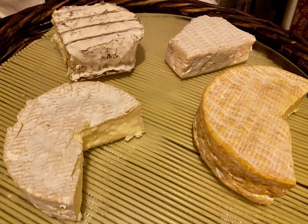Ont suivi un plateau de fromages de Normandie (la région est sacrément réputée pour ses fromages, je ne vous apprends rien…) puis une tarte fine aux pommes, crème anglaise vanillée (oubliée aussi, décidément… le vin était-il trop bon ? 😁)
