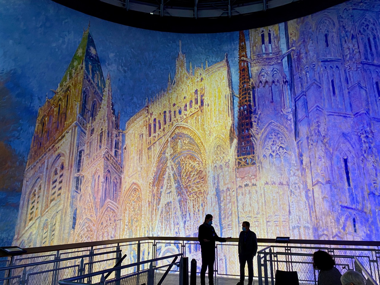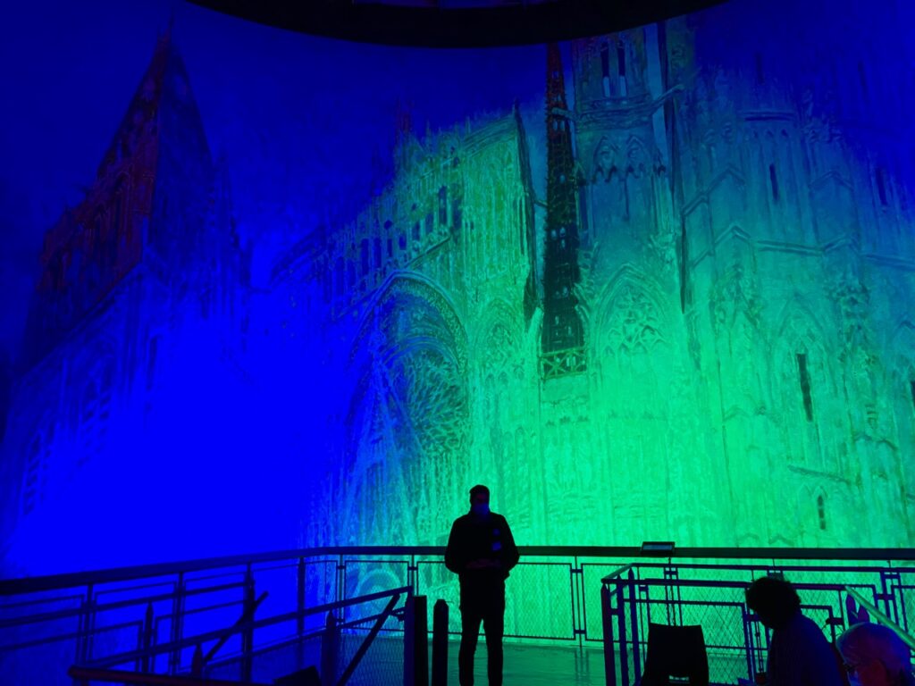 La bande son, signée Éric Babak, est également importante dans l’expérience du Panorama XXL. Plus encore quand un jeu de couleurs psychédéliques illumine la façade de la cathédrale, montrant la rupture nette de l’Impressionnisme dans l’histoire de la peinture.
