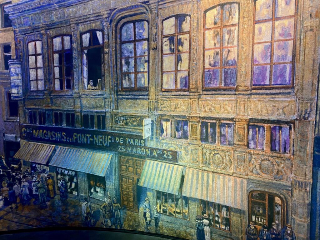 Une fois à l’intérieur de la rotonde, le voyage dans le temps commence… Bâtiments, personnages, vêtements, moyens de transport, tout est conforme à l’époque de Claude Monet et représenté dans un style impressionniste.