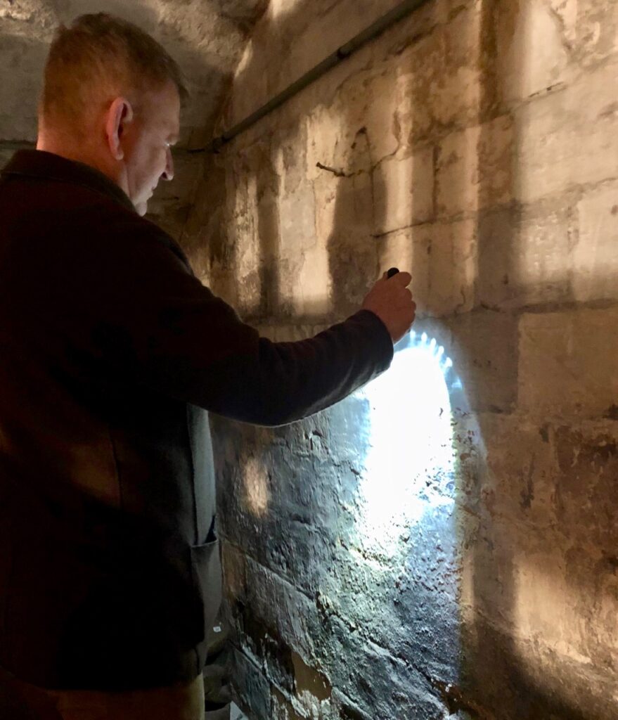 Bon, vous l’avez compris, la rencontre avec Jean-Luc Montois vaut à elle seule la visite du Palais de la cathédrale. On voit bien qu’il éprouve un plaisir fou à parler de sa demeure et n’hésite pas à s’adapter à chaque groupe, en fonction des centres d’intérêt. Il vous emmènera même dans les caves du Moyen-Âge, là où transitait autrefois le « vin de Saint-Omer », qui en repartait détaxé… Des caves où on trouve d’intrigants signes et dates sur les murs…