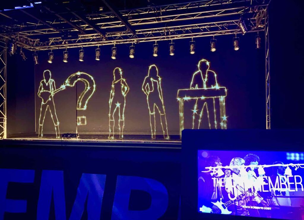 Costumes de scène, loge et studio d’enregistrement, pochettes d’albums, juke-box, photos, vidéos, c’est tout un univers 70’s qui est ici recréé.