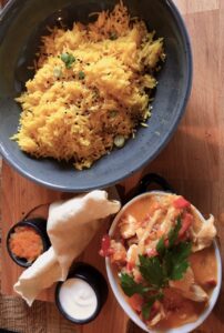 Senses (photo plus haut) est ouvert de 11 h à 22 h 45 et de 13 h à 21 h 30 pour la cuisine (le reste du temps on peut se poser autour de la cheminée ou sur la terrasse). Il sert essentiellement des bowls (bols). Salades, wok, pasta ou curry (photo ci-contre).