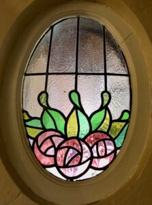 Petit vitrail ovale avec des roses maison d’hôtes À un train d’ici Tournai Belgique