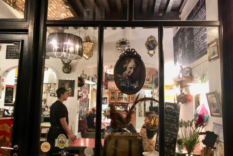 De tous les restos que j’ai testés ces derniers temps (années ?), c’est sans doute le plus fou de tous ! Je l’ai découvert en me promenant sur le web pour préparer mon dernier reportage à Tournai. Puis je suis passée devant sa façade en arpentant la ville. Tatie Danielle : il n’en fallait pas plus pour m’intriguer.
