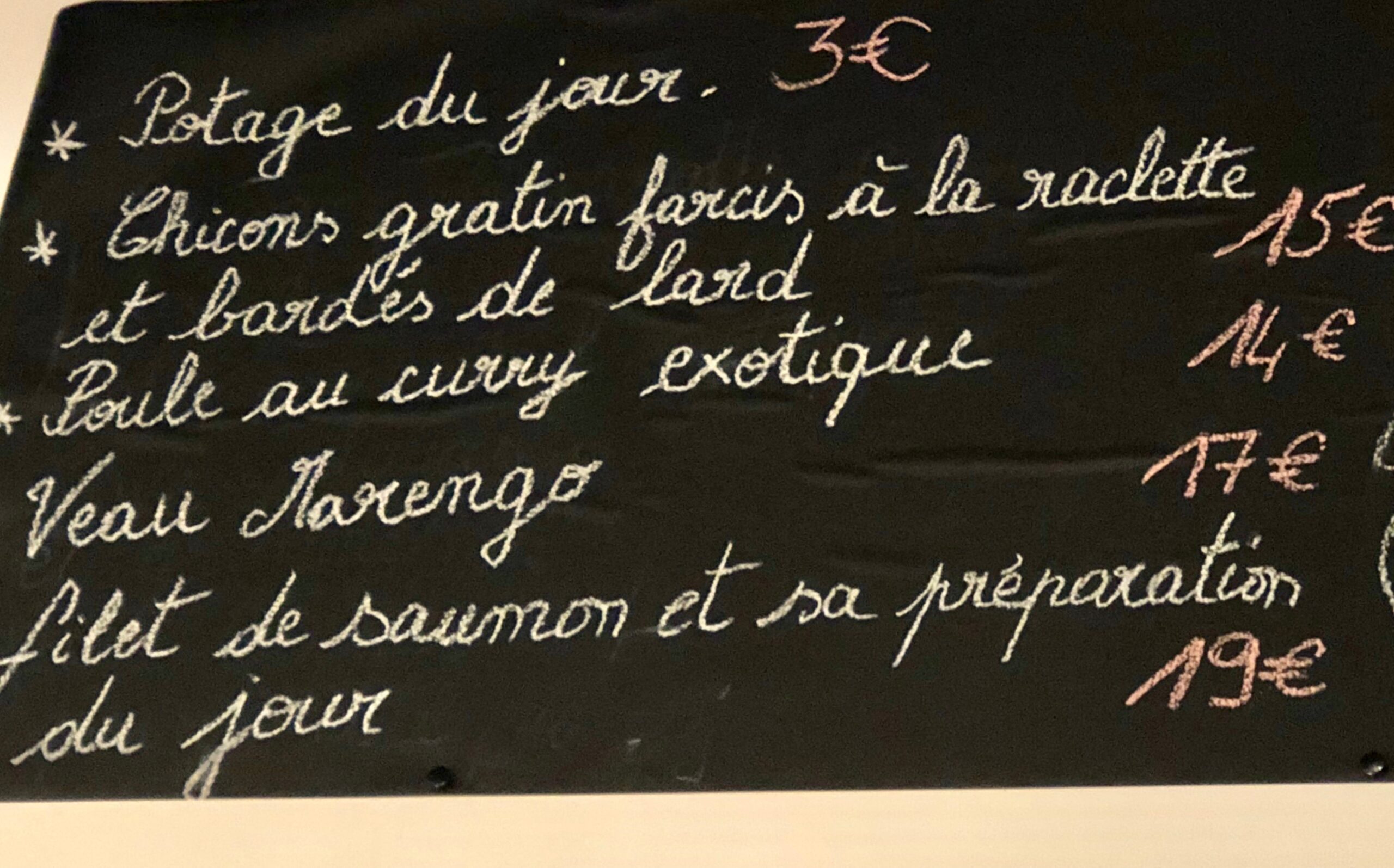 Menu ardoise restaurant Tatie Danielle Tournai Belgique