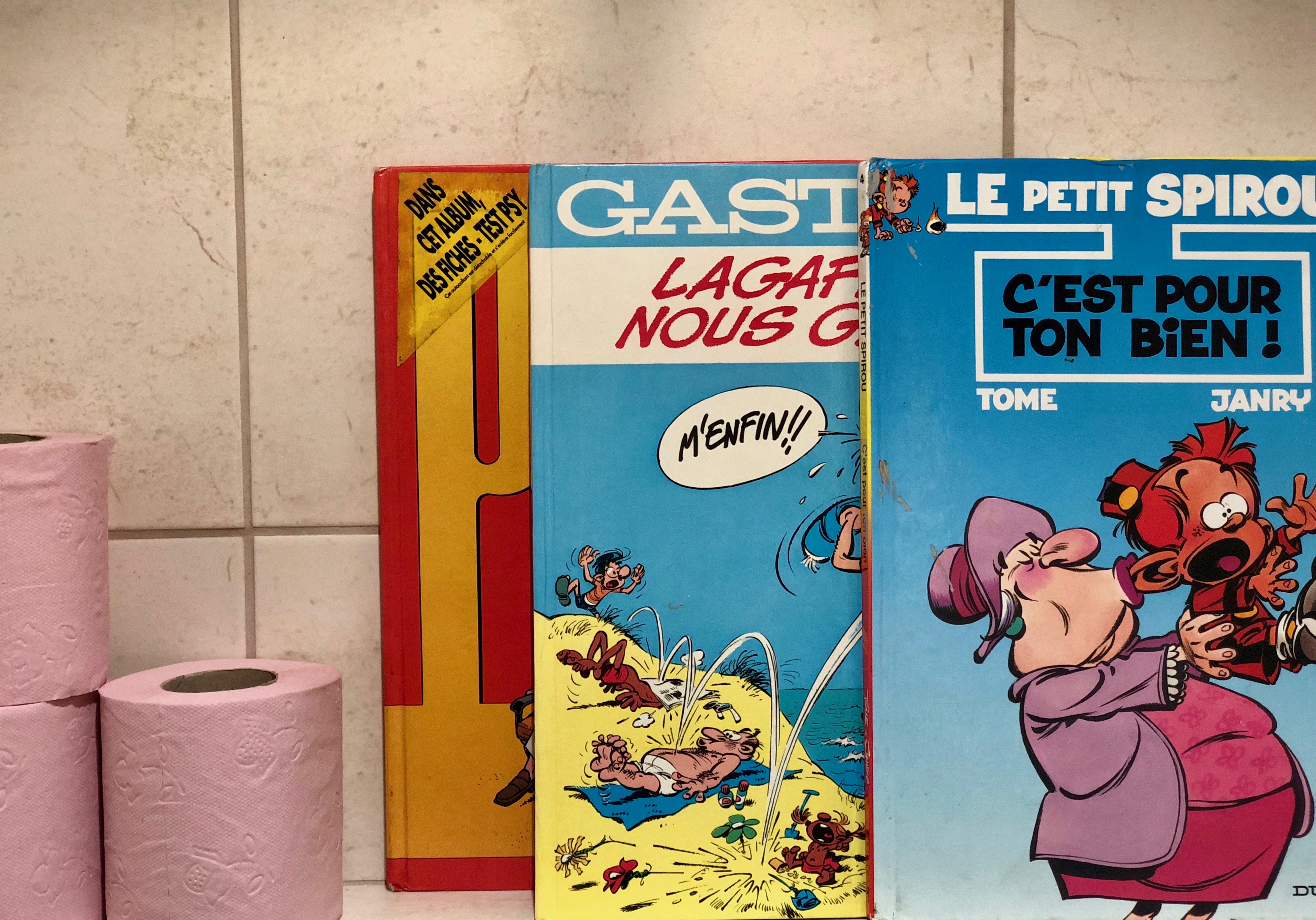 BD belges dans toilettes restaurant Tatie Danielle Tournai Belgique