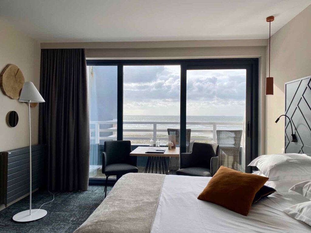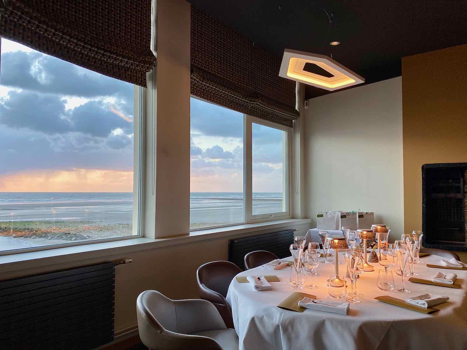 C’est l’un des paradoxes des Hauts-de-France. Si elle a près de 200 km de côtes, notre région n’a que très peu d’hôtels avec vue mer… et un seul qui offre, en plus, une table étoilée. C’est l’hôtel 4* L’Atlantic à Wimereux, dont le restaurant La Liégeoise figure, pour la sixième fois, sur la liste des étoilés Michelin. Fleuron de la charmante station de la Côte d’Opale, l’établissement de Benjamin et Aurélie Delpierre vit au rythme des marées, les yeux tournés vers le large. Deux jours durant, j’ai eu la chance d’embarquer sur l’imposant navire, posé sur la digue. Récit d’un voyage immobile, riche en plaisirs…