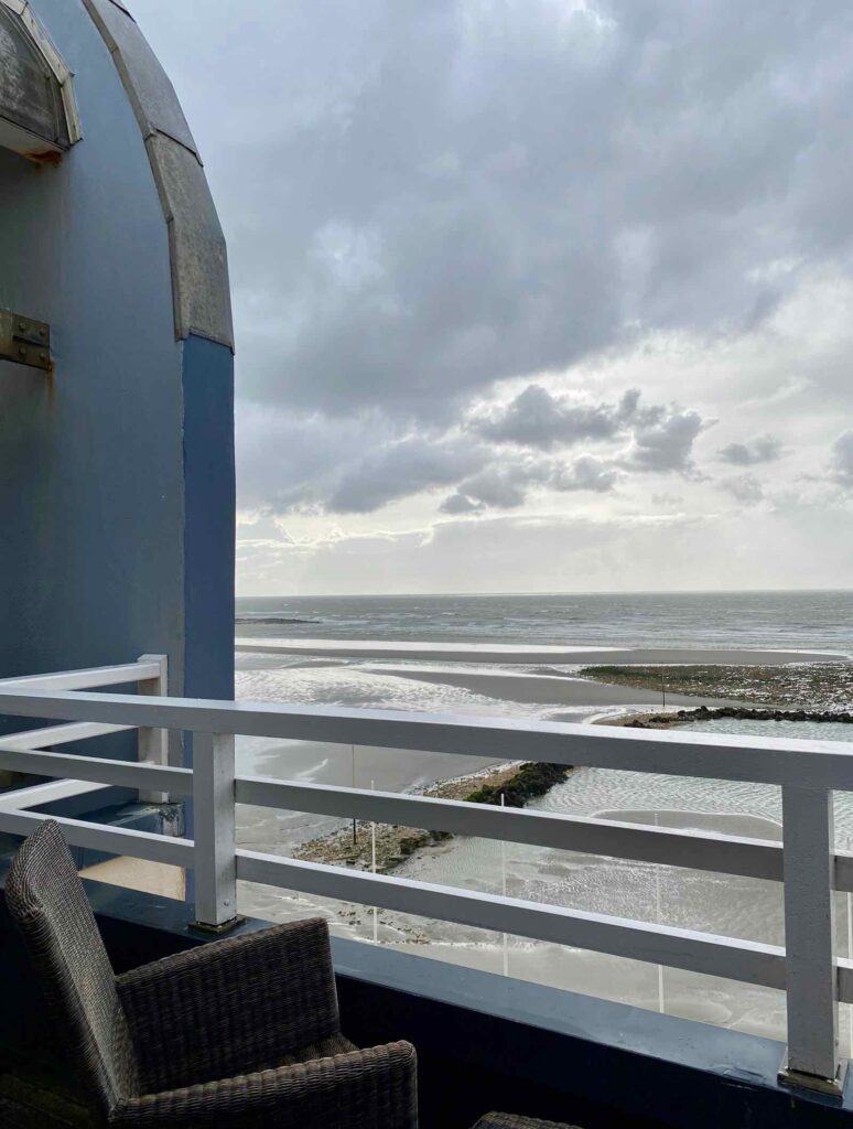Mais la cerise sur le gâteau, c’est bien sûr le balcon qui offre une vue panoramique d’exception. La terrasse de la brasserie L’Aloze, au pied du bâtiment. La digue déserte. Le ciel d’hiver et ses éléphants gris verts (comme dirait M. Souchon). Et là, à ma gauche, un bout de l’arrondi emblématique de L’Atlantic, juste à portée de main…