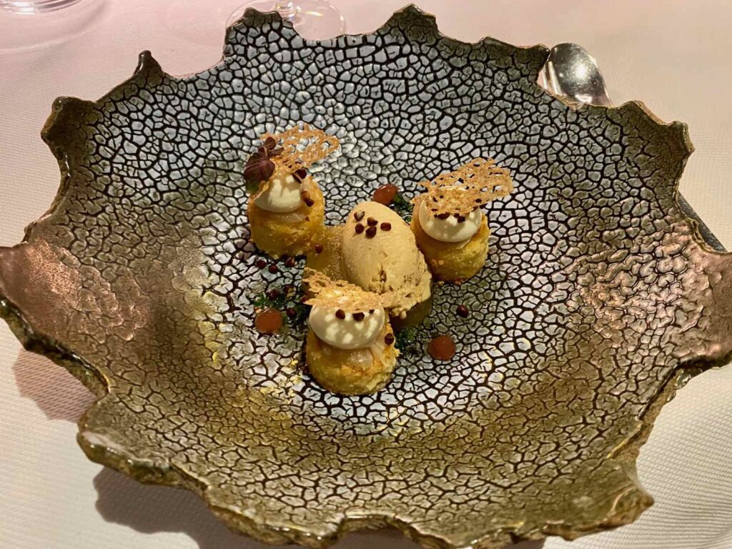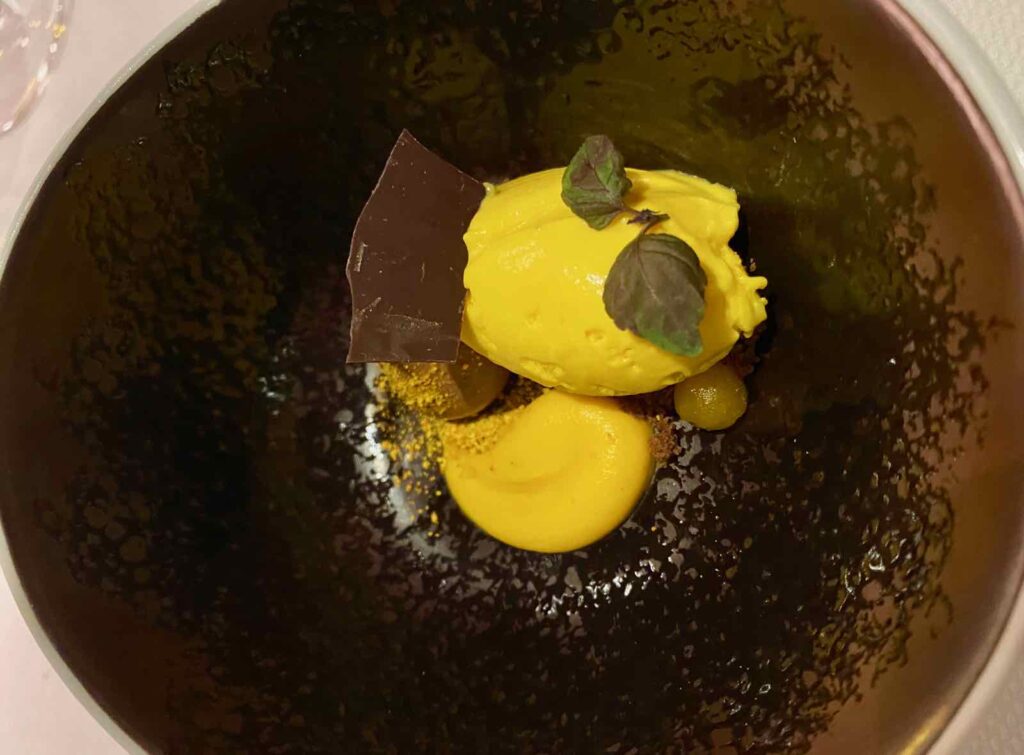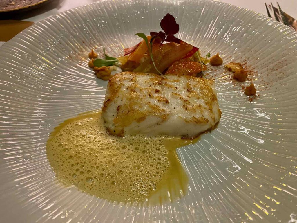 Cette impressionnante farandole de saveurs iodées s’est achevée par un « Turbot, couscous de céleri, chorizo, saveurs orientales ». Fraîcheur au top, cuisson parfaite (faut-il le préciser ?) et accompagnement un brin décoiffant mais vraiment savoureux.