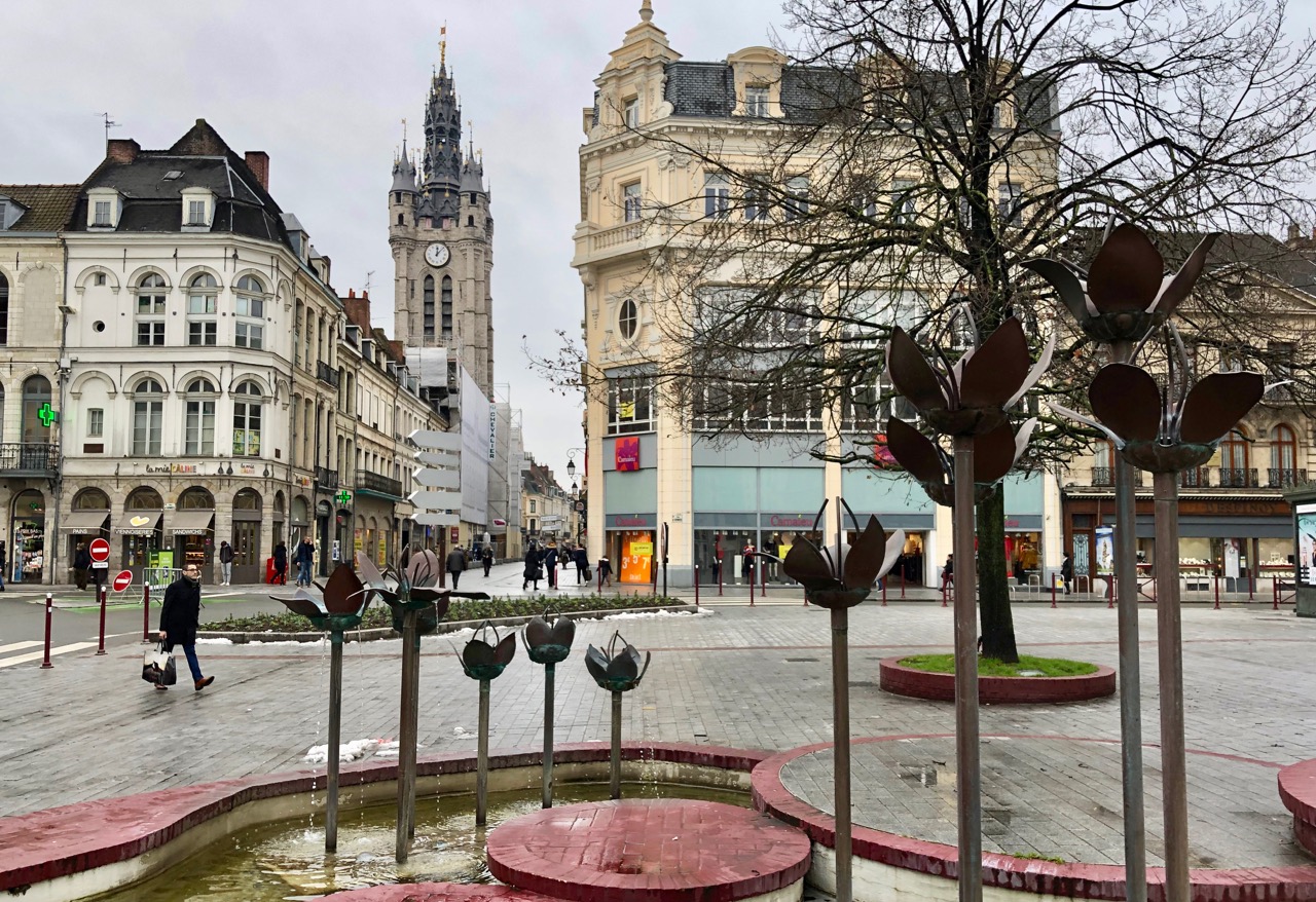 Surtout côté place d’Armes, là où j’ai fait ma photo d’accueil de cet article… et où Louis Watteau s’était posté pour peindre La Famille du Grand Gayant de Douai.