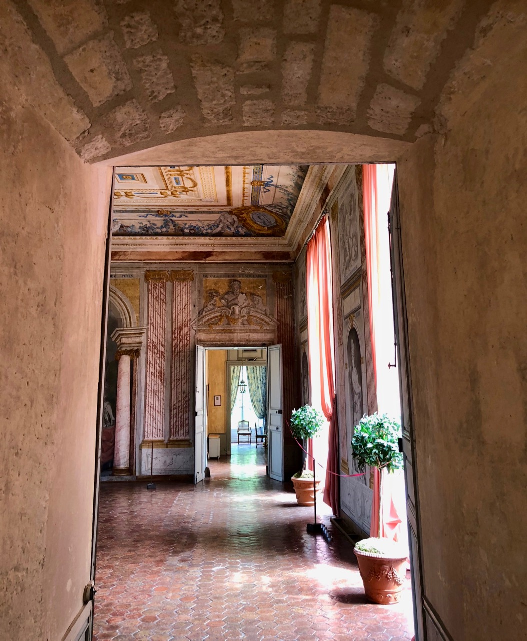 J’ai donc arpenté un moment, seule, les salles et salons du château. Et je me suis imprégnée des ambiances successives. La merveilleuse salle de bal de 1720, plus vieux décor de théâtre d’Europe, plus ancien que celui de Versailles ! 360 m2 de peintures sur une toile tendue à cinq centimètres des murs. Magnifique.