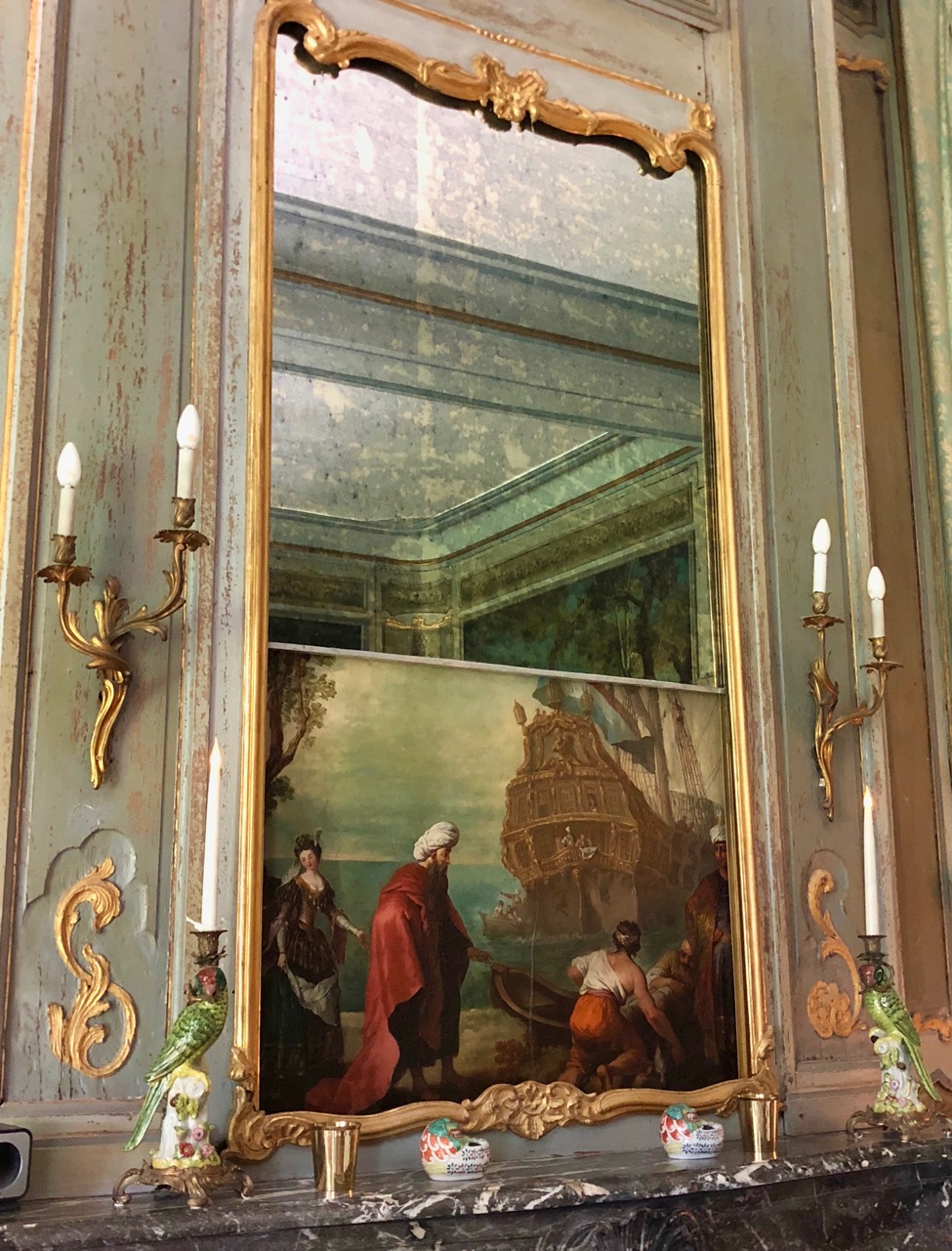 Château Condé-en-Brie - salon vert détail miroir escamotable