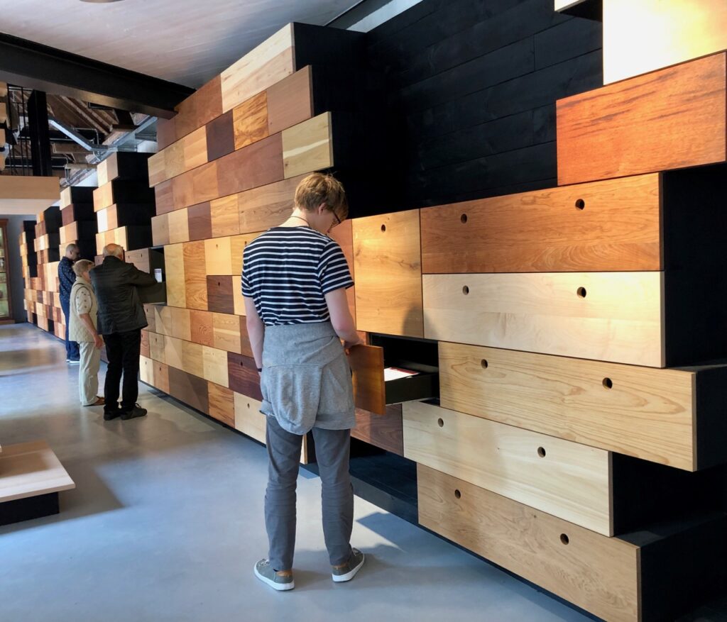 Pas de chemin balisé, pas de plan en main, juste le plaisir de se laisser porter par la promenade, nez au vent. Avec une pause dans les tunnels en osier, dans le labo du bois ou sur le coin d’herbe où poussent de drôles de sculptures…