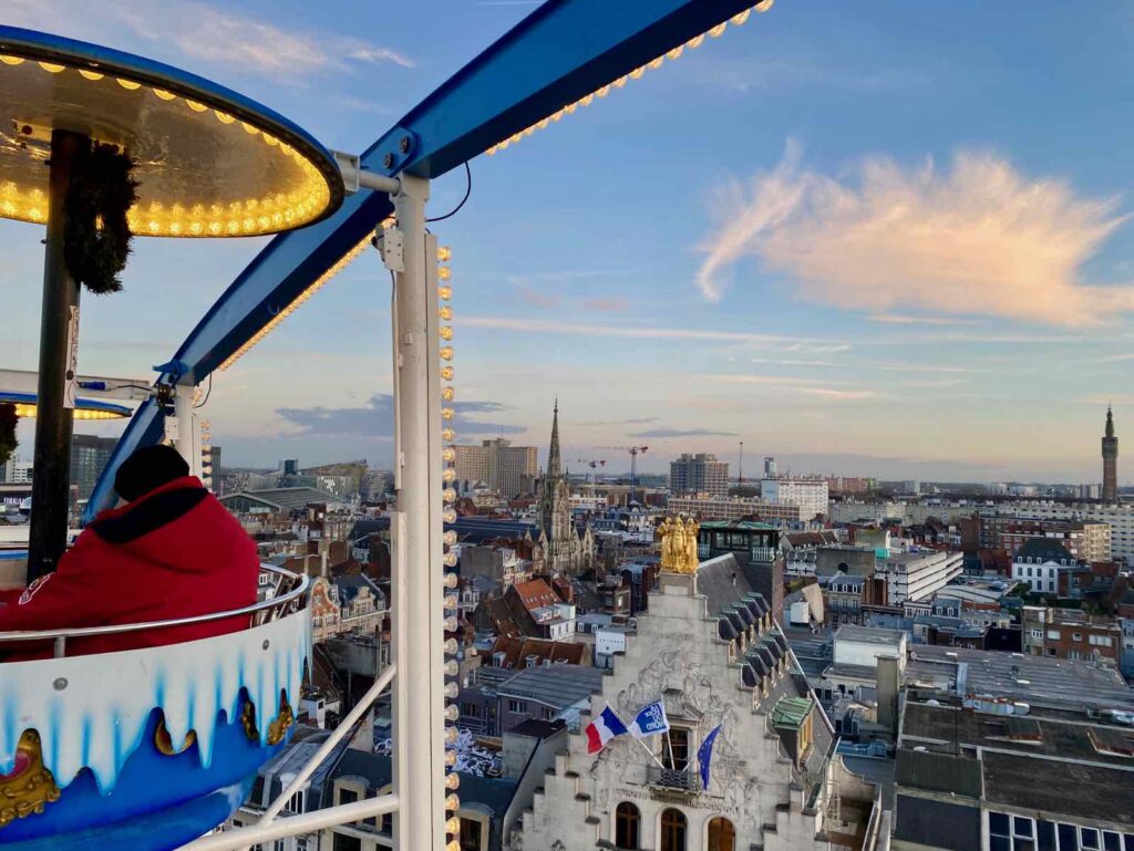 Quoi qu’il en soit, n’oubliez pas votre téléphone ou votre appareil photo. Car la vue de là-haut, à environ 50 mètres, est vraiment sublime. Notre belle Déesse, les beffrois, les trois belles dames dorées assises sur le pignon de « La Voix du Nord » et aussi le marché de Noël de Lille, place Rihour, c’est simplement magnifique !