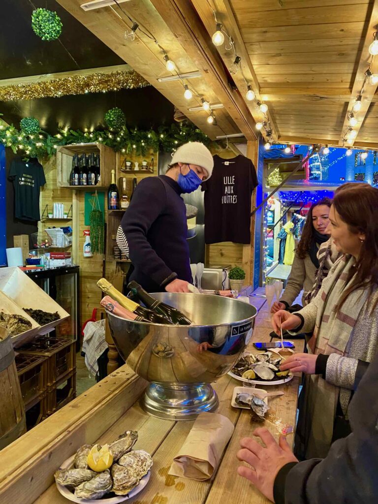 Petit nouveau aussi, Lille aux huîtres est un bar chic proposé par des locaux, comme une oasis de luxe au cœur du marché de Noël de Lille. Huîtres (forcément !), champagne, saumon fumé et caviar, c’est un peu la Russie des tsars ici… Pour 2 € (l’huître à la pièce, sur place) à 10 € (l’assiette de saumon ou le petit verre de vodka + sa cuillère de caviar), on se prendrait presque pour la Grande Catherine…
