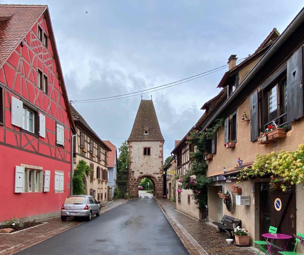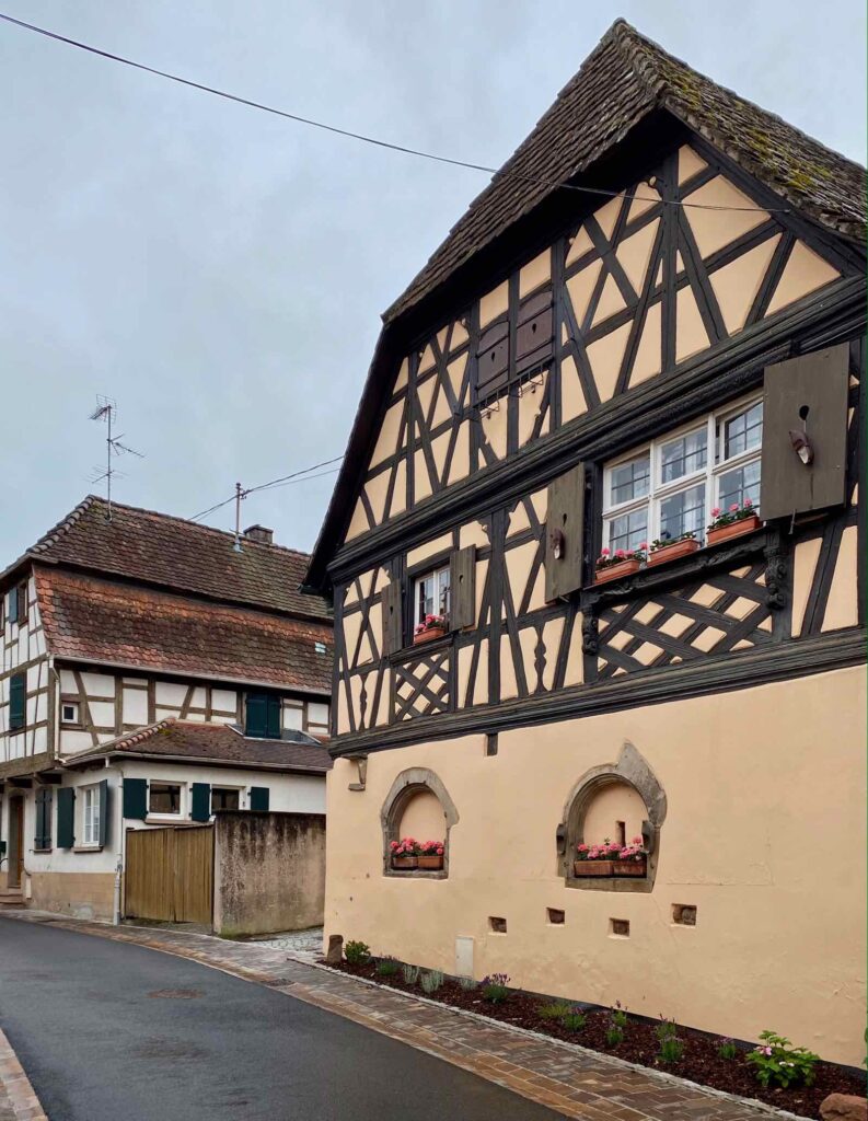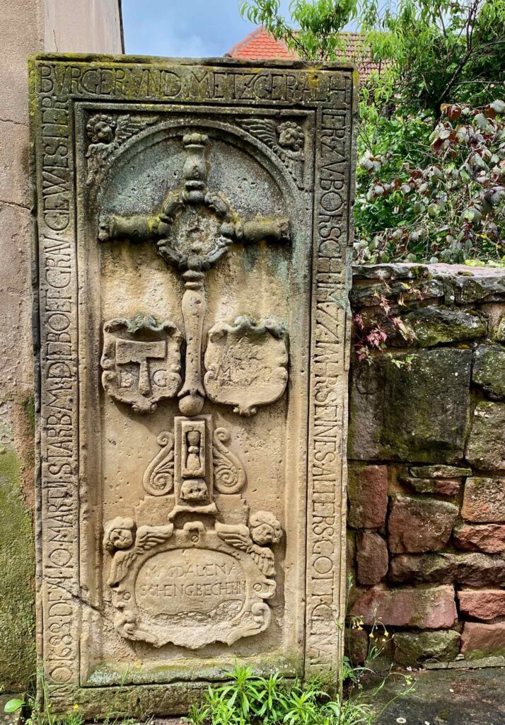 Je vous passe les détails de l’histoire de Boersch, qui a été tout sauf un long fleuve tranquille. Sachez juste que la petite cité acquiert le statut de ville en 1340, époque dont datent ses remparts ainsi que les trois portes toujours debout. Et s’il ne reste pas grand-chose de l’ancienne enceinte du XIVe, vous en verrez tout de même un tronçon dans le jardin de la MJC.