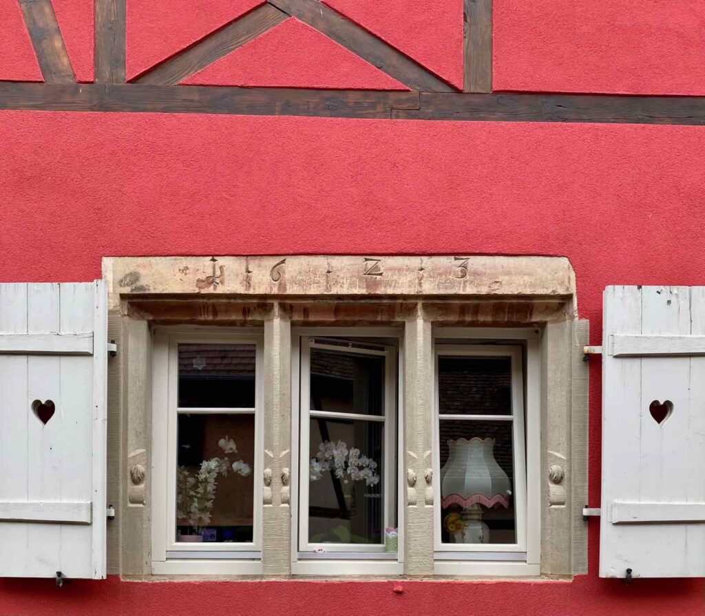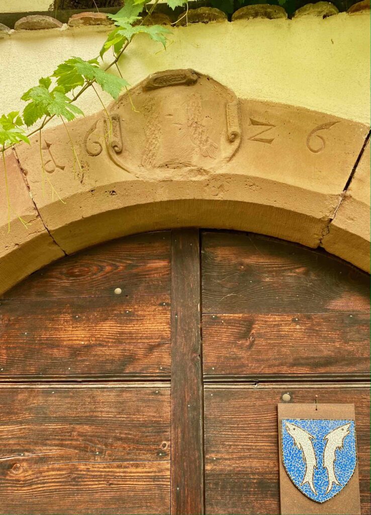 Mais Boersch, c’est aussi une cité vigneronne avec ses maisons à colombages, ornées d’emblèmes de métiers, qui racontent la vie d’autrefois. Souvent sculptés dans la pierre, dans le linteau des porches ou au-dessus des fenêtres, ces emblèmes représentent outil(s) ou objet(s) fabriqué(s) par l’artisan qui vivait là.