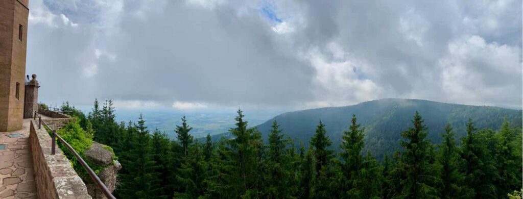 Dominant la plaine d’Alsace, Sainte-Odile offre des vues à couper le souffle depuis ses terrasses panoramiques et certains n’y montent que pour cela. Je fais partie de ceux qui ne se lassent pas de ce paysage, qui peut changer d’heure en heure, selon la saison et le temps qu’il fait. Ce jour-là, nous avons eu les quatre saisons en une journée, ce qui m’a permis de mettre en boîte des ambiances assez différentes…